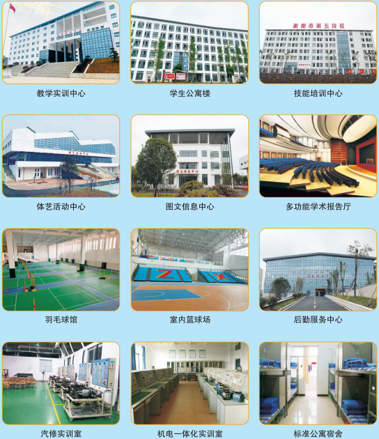 湖南省衡阳市第五技工学校是经湖南省发改委及湖南省人力资源和社会保障厅批准、衡阳市人力资源和社会保障局主管的一所公办技工学校。学校创办于1981年,为衡阳市三星文明单位、湖南省园林式单位、湖南省重点技工学校、湖南省骨干技工学校、湖南省特种作业人员定点培训单位、国家职业技能鉴定所。
